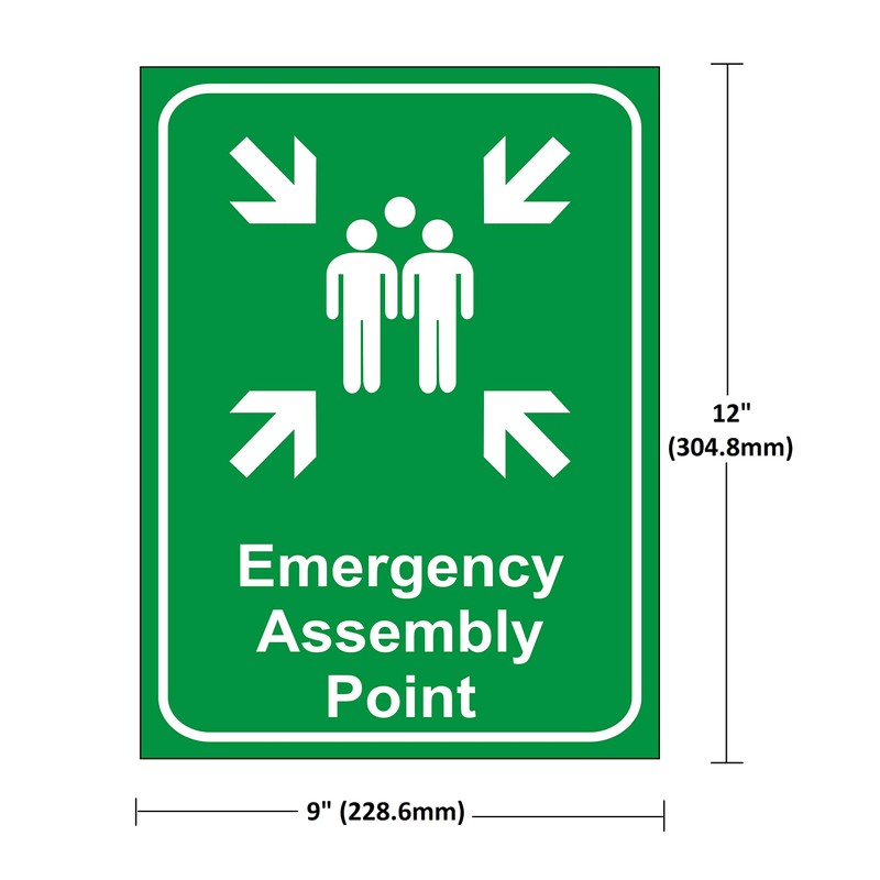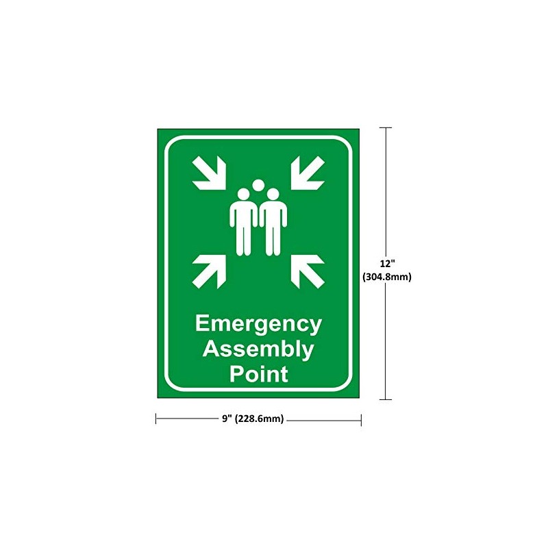 eSplanade Emergency Assembly Point Sign Sticker Decal - Easy to Mount Weather Resistant Long Lasting Ink (Size 12"x9")
