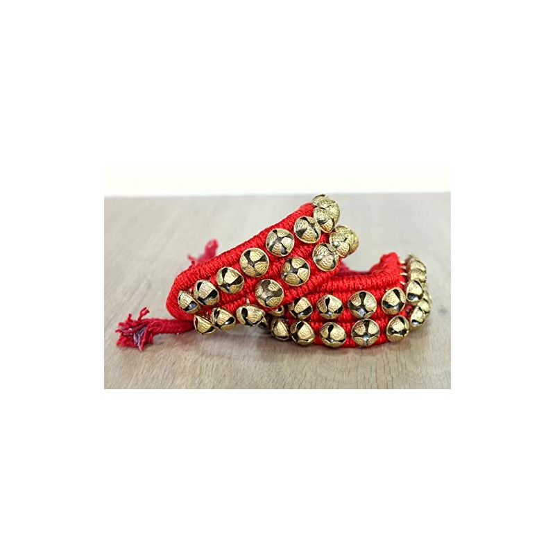 From eSplanade - Brass Ghungroo for professional dancers and learners. This is a 2 row red ghungroos pair with each pad 20 large (5/8") ghungroos on each well padded fabric pad. The cushion helps with better fit and comfort. The bells are large and provide the right amount of sound.