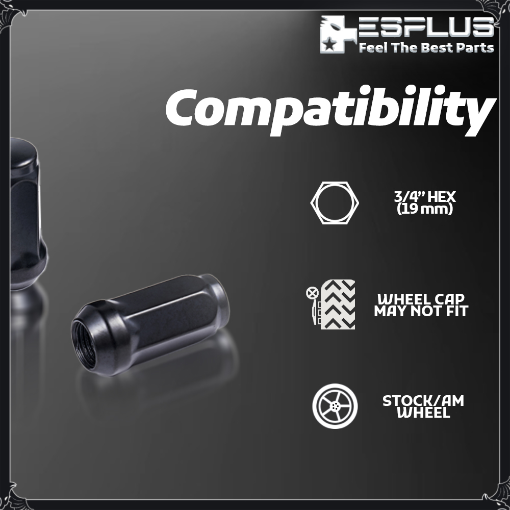 ESPlus 32 Pcs Black M14x1.5 1.8" Lug Nut Fit 8-Lug 2012-2024 Ram 2500/3500 AM-Rim