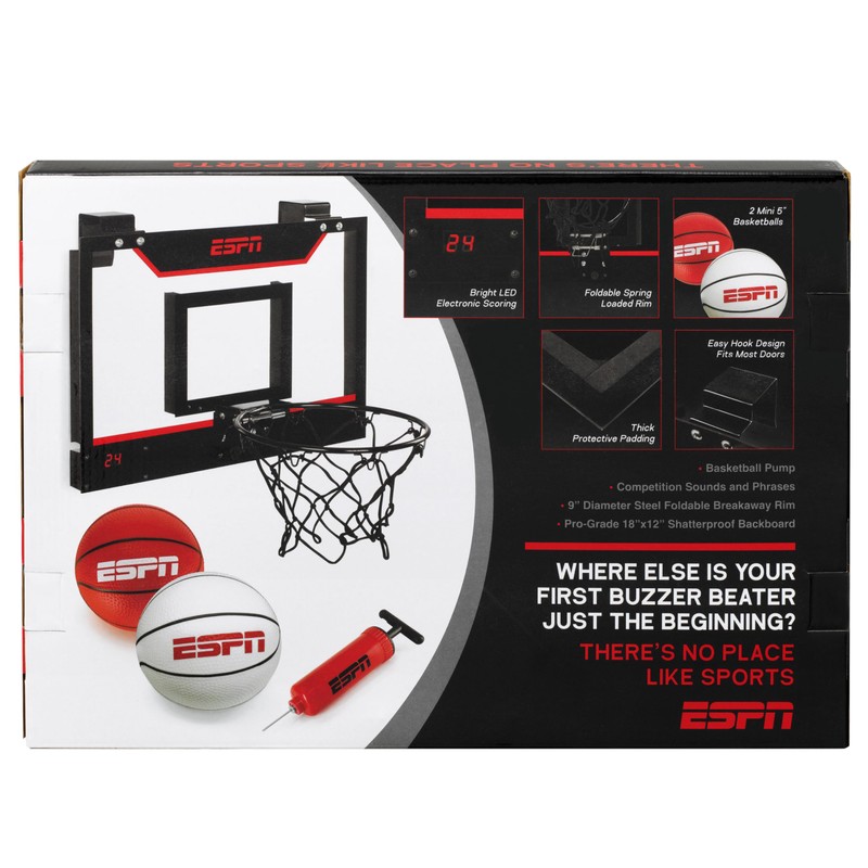 ESPN Mini Basketball Hoop, Over The Door Basketball Hoop with Foldable Breakaway Rim and Ball Return, Includes 2 Mini Basketballs and Pump
