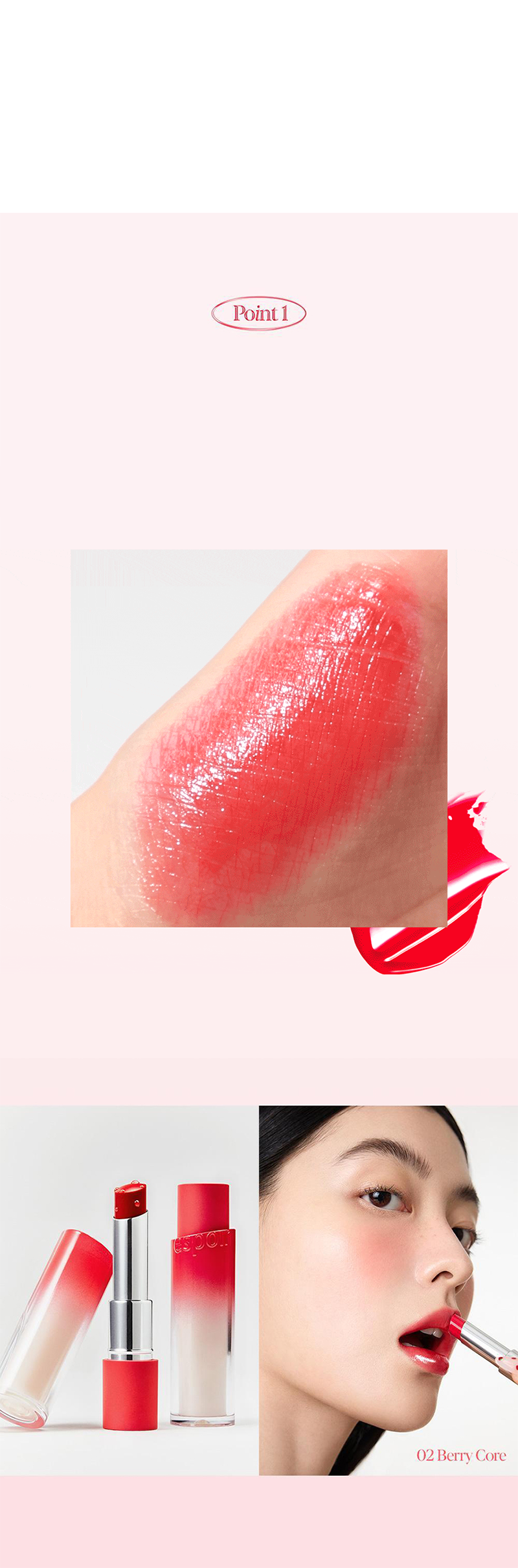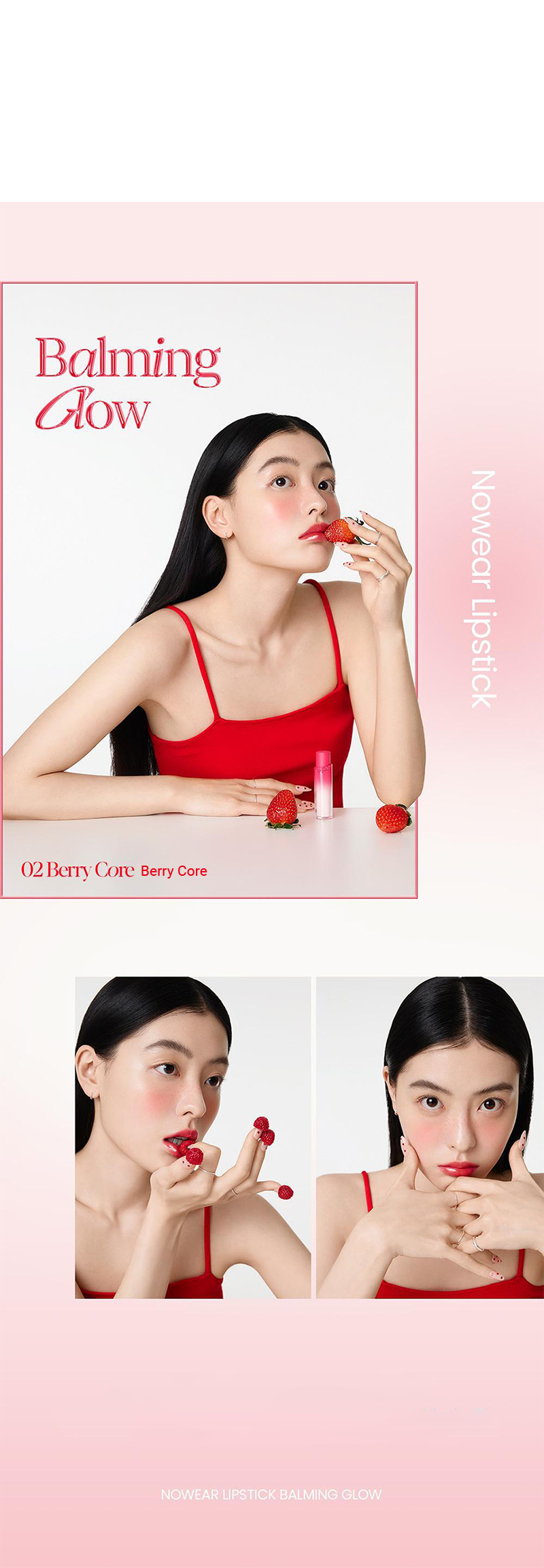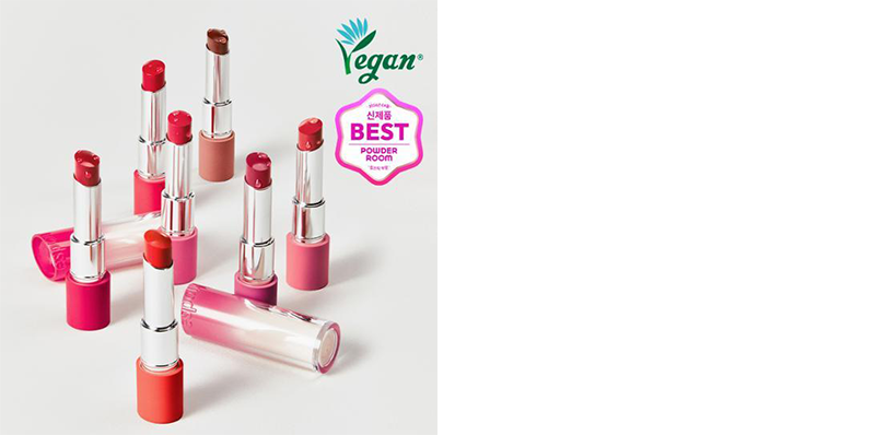 Clear balming glow that provides refreshing texture for a long time. The vivid shade is maintained for a long time, and the lightweight glow layer of balming glow lipstick shines with clear and juicy look. Consists of berry shades that present vitality of moisturizing berries. Provides an innovative long-lasting coloring effect that retains color on inner part of lips by overcoming limitations of shine lipsticks that are easily erased. A lightweight and refreshing new no-wear texture as if you’re wearing nothing on your lips. Removed limitations of sticky shine lipsticks and applied non-sticky technology and no-wear texture that has another level soft application and lightweight formula. Free from any animal ingredients and managed to inhibit cross-contamination. Has a vegan formula certified by the Korea Agency of Vegan Certification and Services that manages strict certification procedure by not accepting animal experiments.