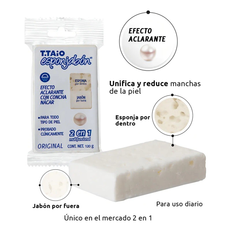 Esponjabon de Concha Nácar Aclarante 2 en 1 T.Taio. Reduce cicatrices y Blanquea La Piel.