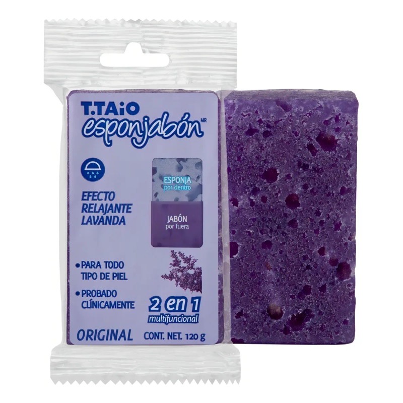 Esponjabon T.TAIO Lavanda Relajante 2 en 1 (Esponja + Jabón) 120g – ¡Doble Beneficio para una Piel Radiante y Relajada!