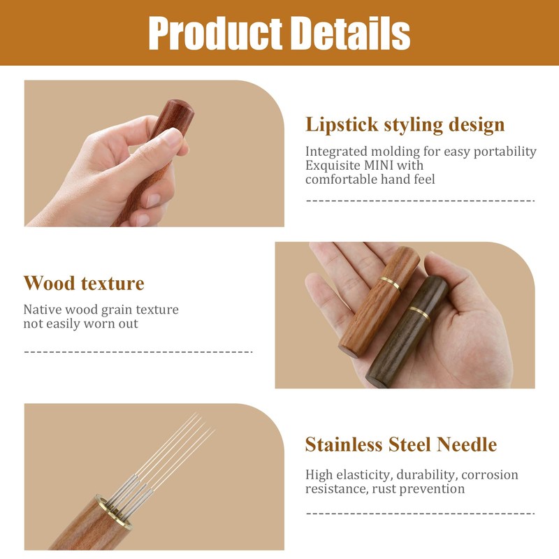 - High Quality Material: The needle of coffee distribution tool is made of stainless steel material, corrosion resistance, no rust, and a handle and base made of raw wood The surface is delicately polished and has a unique and beautiful texture.