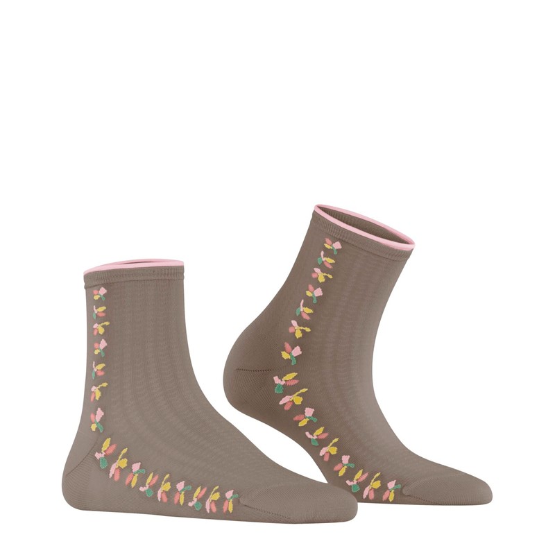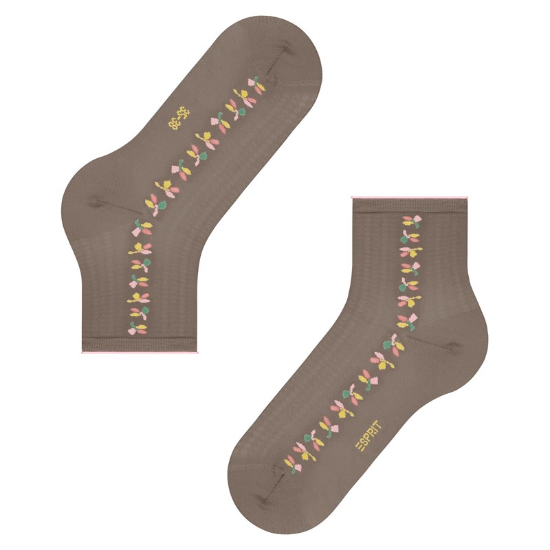 ESPRIT Women's Structured Leaves Short Stockings Breathable Cotton Lyocell Thin Patterned 1 Pair, Brown (Sughero 5031)