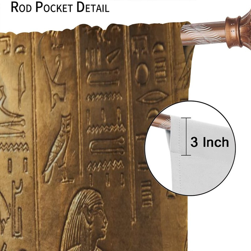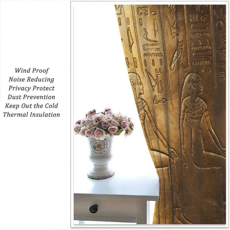 ESPROUTTY Egyptian Print Curtains, Window Blackout Curtains Golden Egypt Hieroglyphics Old Logographic Details and Alphabetic Elementst Lightweight Decorative 2 Panels, 26W x 84L inch Each Panel