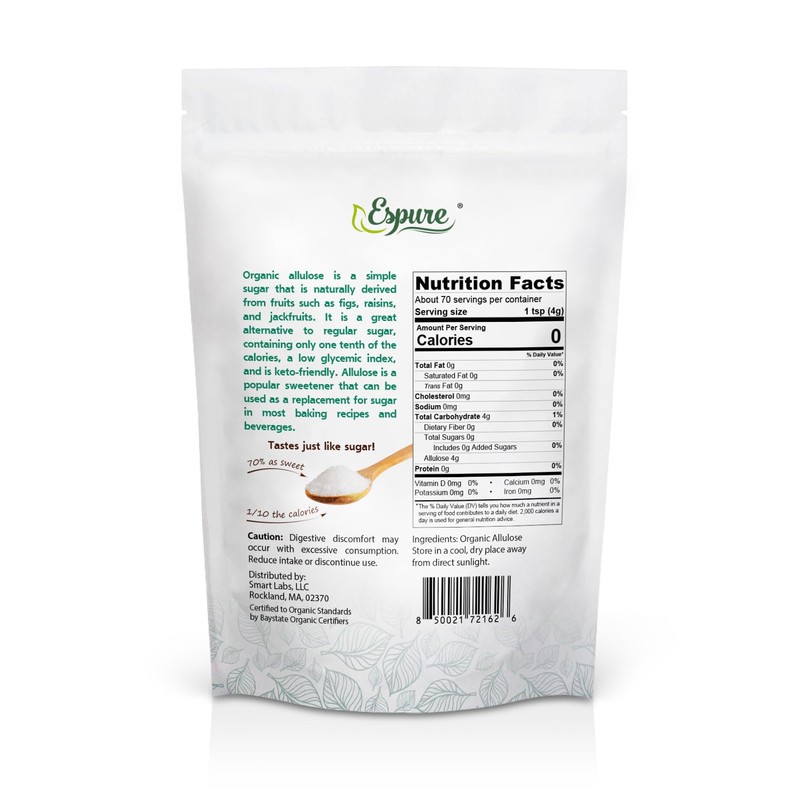 Espure Organic Allulose - USDA Certfied Organic, Low Calorie Sugar Replacement, Non-GMO, Vegan, Gluten Free; 10 oz
