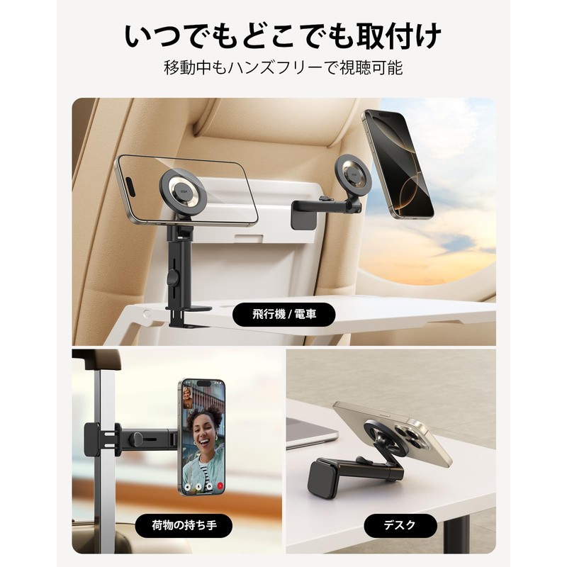- 【Essential for Airplane Travel】 The base clamp fits up to 1.77 inches (4.5 cm) wide, so you can easily attach this versatile travel smartphone holder anywhere from airplane seat bags, luggage handles, gym equipment, kitchen utensils, etc