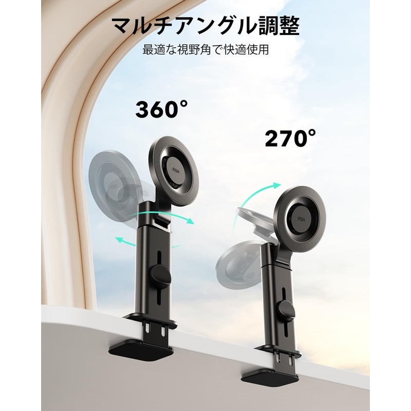 - Multi-Angle Smartphone Mount: This smartphone holder can be used for tabletop settings with 2 levels of angle adjustment: 360° on the arm and 180° on the folding part. The magnetic suction mount also allows you to rotate your phone 360° freely and easily switch to a comfortable viewing angle or horizontal/vertical screen
