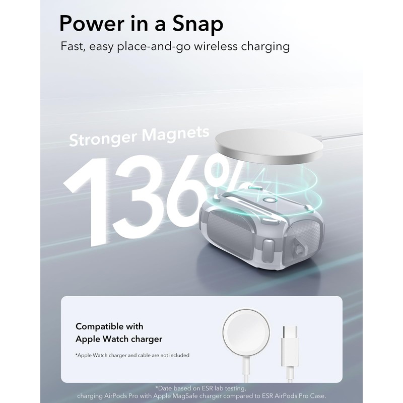 - MagSafe Ready: strong magnets in the back of the case ensure a secure lock on MagSafe chargers, letting you enjoy tap-and-go wireless charging for your earbuds