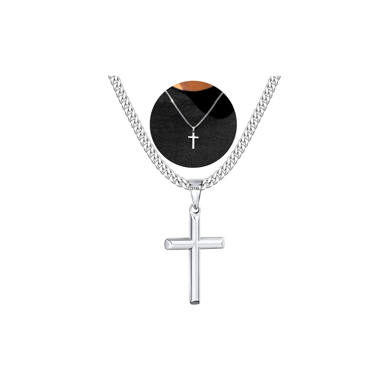 - Material: silver cross necklace for men, cross with pendant and Cuban chain are made of 316L stainless steel, high-quality makes it robust lead-free, nickel-free and hypoallergenic.