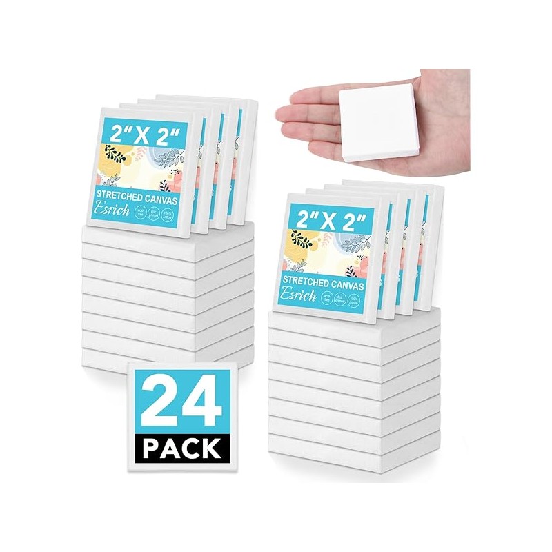 ESRICH Mini Stretched Canvas 24Pack 2x2inch, 2/5''Profile Art Primed Canvases for Painting, Cotton Small Professional Stretched Canvas for Kids and Art Supplies.