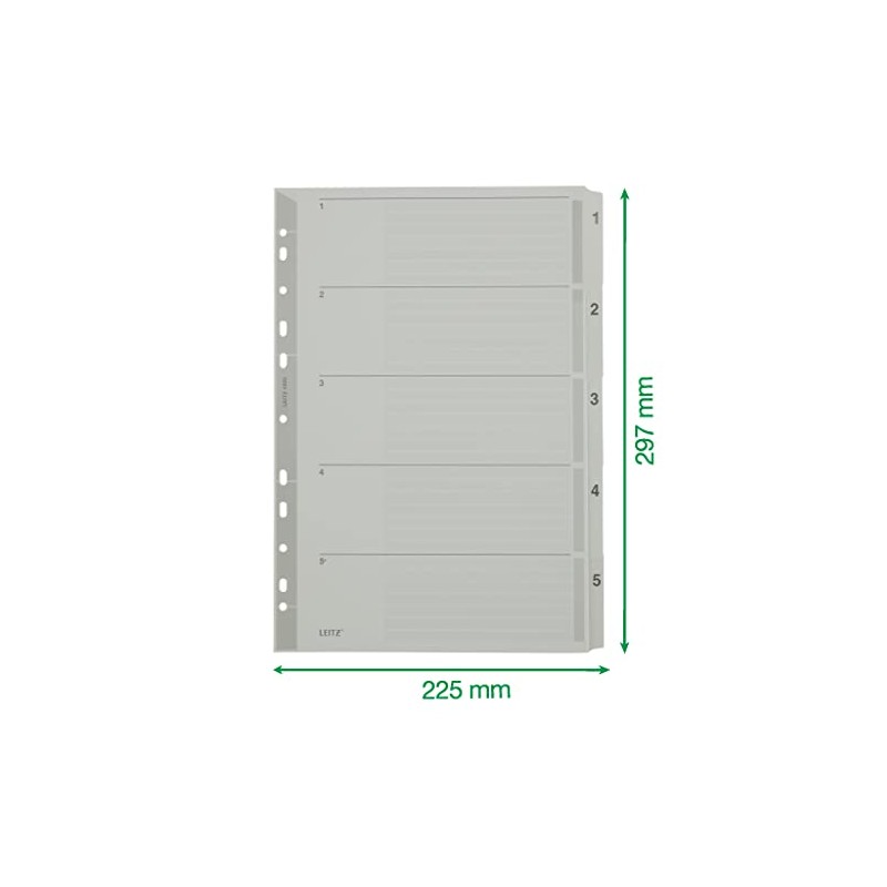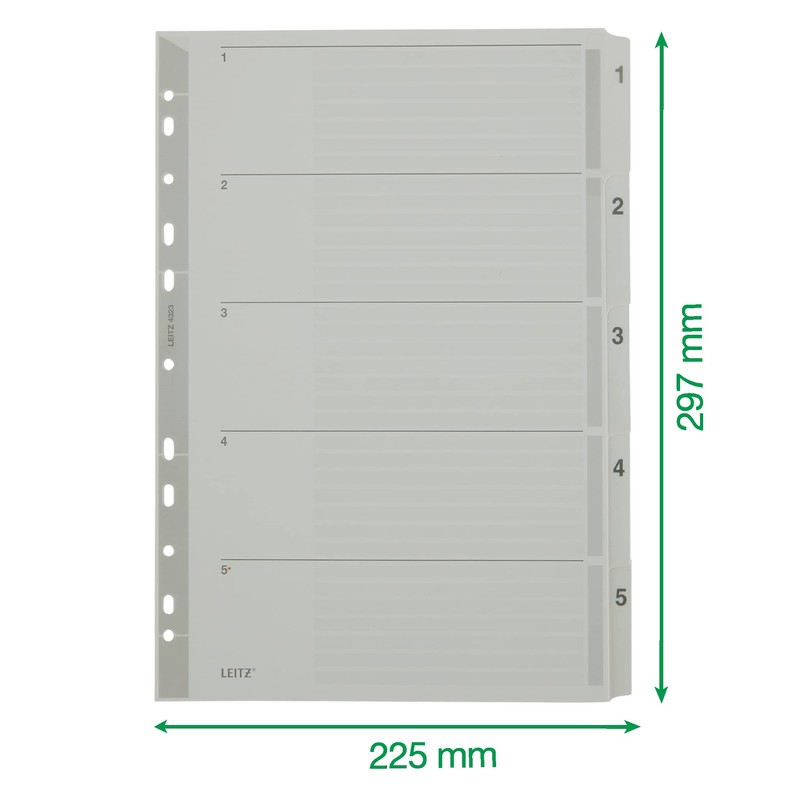 - Box contents: 1 x Leitz dividers for A4 folders, cardboard, dimensions (W x H x D): 22.5 x 29.7 x 0.2 cm, colour: grey, 43230000