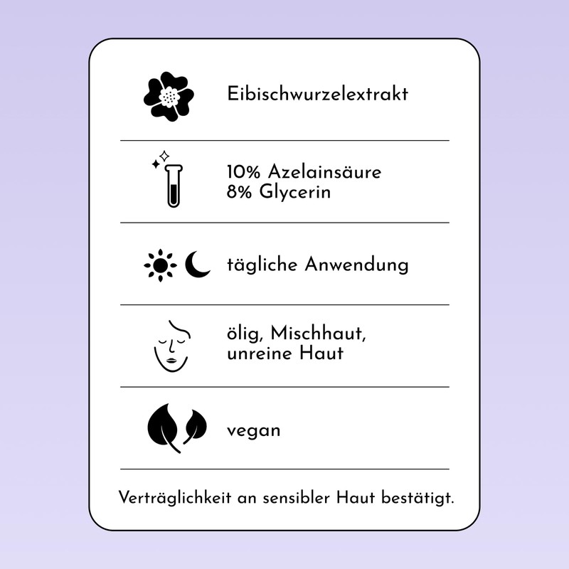 - Powerful combination: Fine Time Pore minimiser serum with azelaic acid, glycerine and marshmallow extract ensures a soothed complexion thanks to gentle exfoliation.