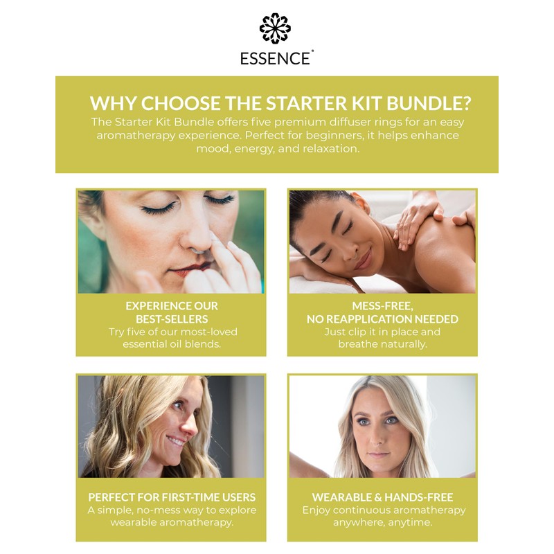 Essence Nasal Diffuser Starter Kit – Essential Oil Silicone Nose Ring Inhalers for Beginners – Wearable Aromatherapy Bundle for Relaxation, Energy & Breathing Support