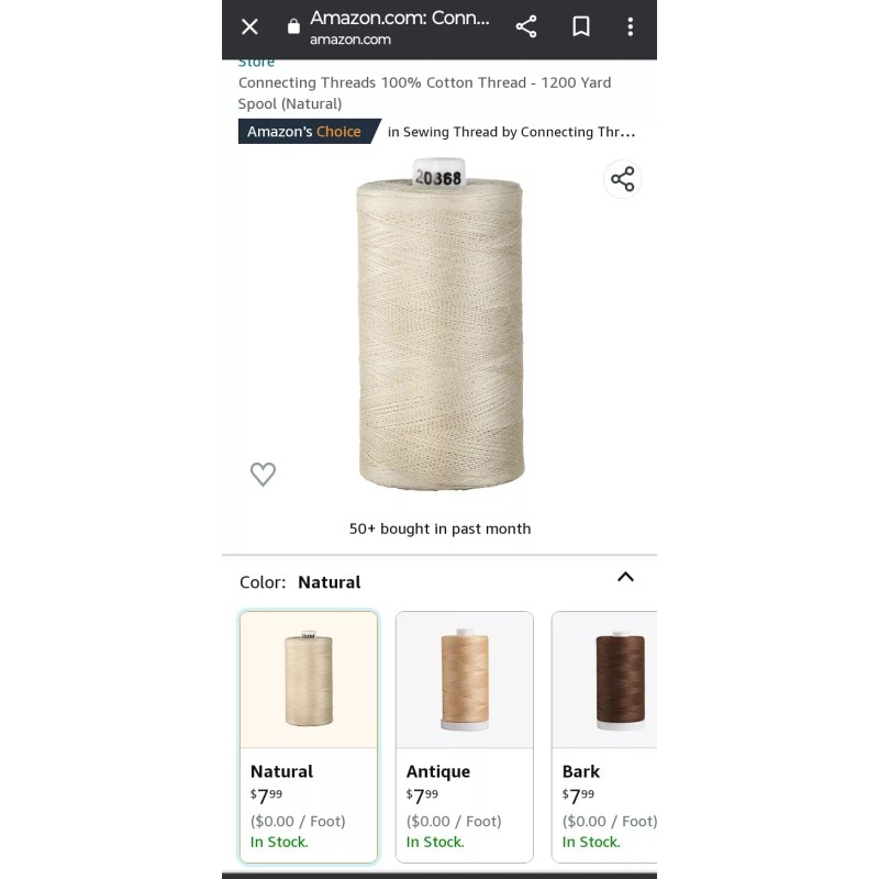 Essential 100% long staple cotton satin finish thread ~ 1200 yards ~ size 50