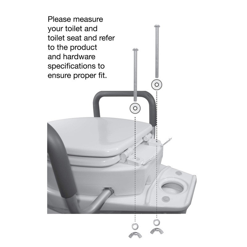 - Installs under your toilet seat giving you a 3.5" rise: Don't forsake the comfort of your own toilet seat, use the easy to install Elevated Toilet Seat with Arms. It can safely be installed under your seat for your comfort and support.