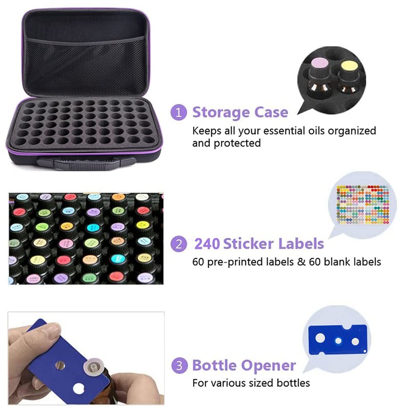 - 💎Practical: essential oil transport box for up to 60 bottles: store all bottles from 5 to 15 ml. (Bottles not included) You can easily see, classify or remove the desired bottles to meet your different needs.