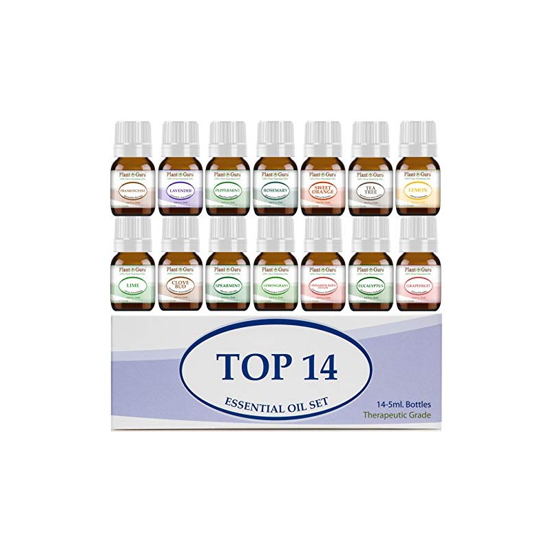 Essential Oil Set 14 - 5 ml Therapeutic Grade 100% Pure Frankincense, Lavender, Peppermint, Rosemary, Orange, Tea Tree, Eucalyptus, Grapefruit, Lemon, Lime, Clove, Spearmint, Lemongrass, Cinnamon