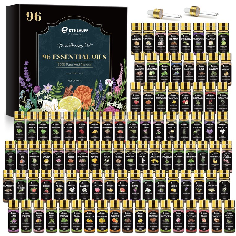 Essential Oil Set - Essential Oils - Pure Essential Oils - Perfect for Diffuser, Massage, Soap, Candle, Bath Bombs Making, Skin & Hair Care, 96x5ml(0.17fl.oz)