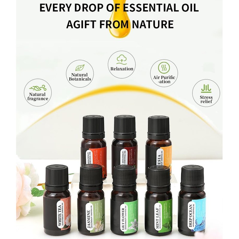 - 【RICH VARIETY】The home fragrance oils carefully presents 8 10 ml high-quality aromatherapy oils, including the pure scents of jasmine, white tea, rose, lily, freesia, orange, mint and deep ocean. Each bottle is a tribute to the beauty of nature, bringing you a warm olfactory feast.