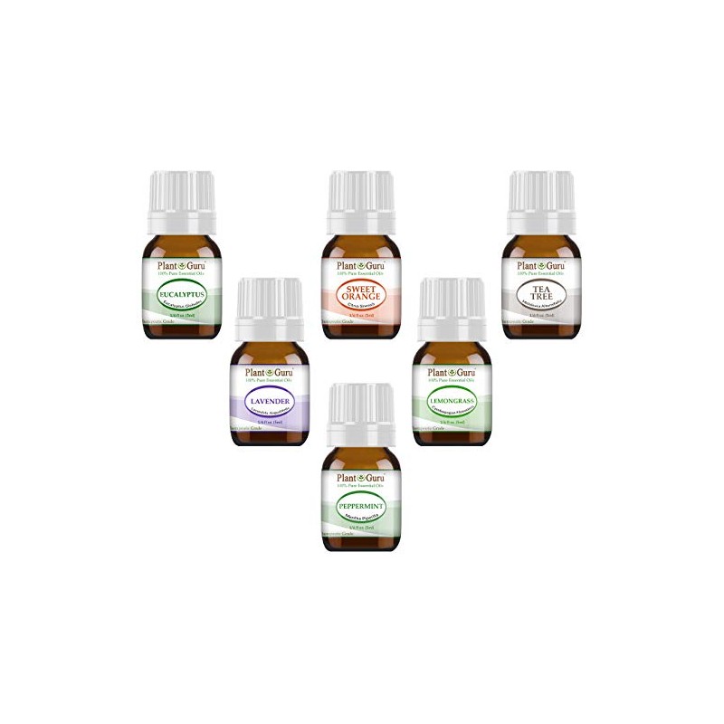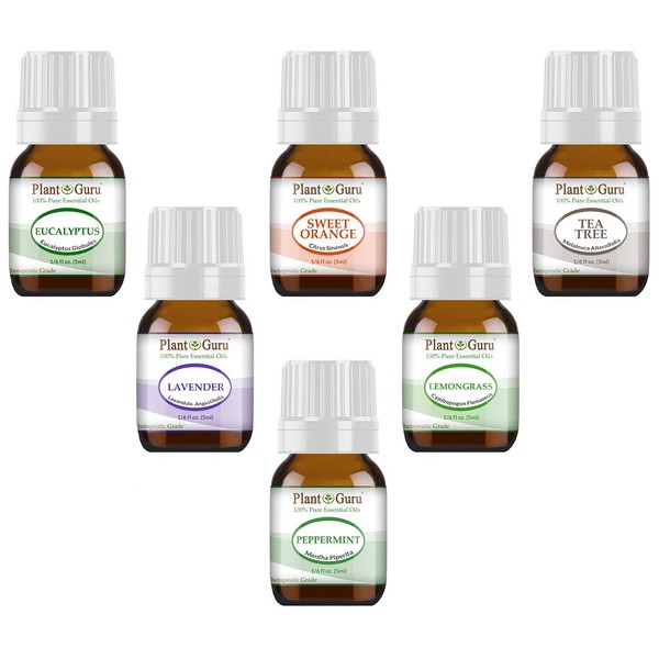 - Set Includes 6 - Plant Guru 5 ml. Bottles. Tea Tree, Lavender, Eucalyptus, Lemongrass, Peppermint & Sweet Orange
