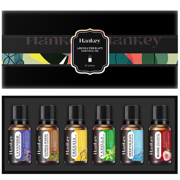 Essential Oils Set, Starter Kit Oils for Diffusers for Home, Aromatherapy Oils Gift Set 6 * 10 ml - Rose, Lavender, Freesia, Deep Ocean, Sandalwood, Vanilla for Any Occasion