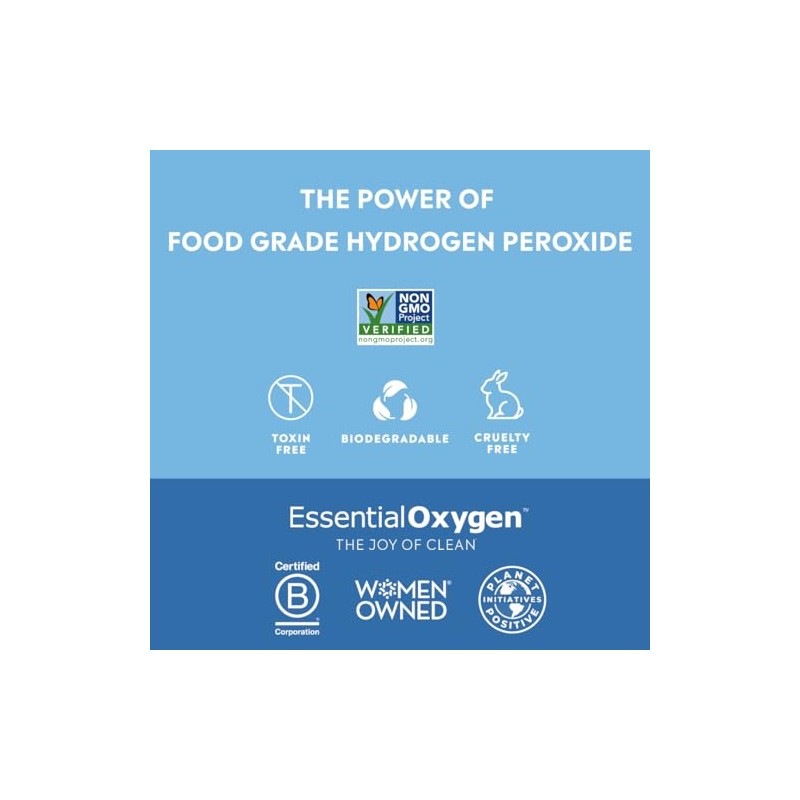 Essential Oxygen is a certified woman-owned triple bottom-line company that sees this planet and its people beaming with optimal health and promotes this vision by creating truly effective and clean natural products. Essential Oxygen 3% Food Grade Hydrogen Peroxide is THE essential product for every household because it powerfully cleans without imparting any toxic residue. With none of the toxic stabilizers found in non-food grade, brown bottle varieties, FGHP3 is the cleaner way to clean…everything from 1st aid to body to household to food to pets and even plants.