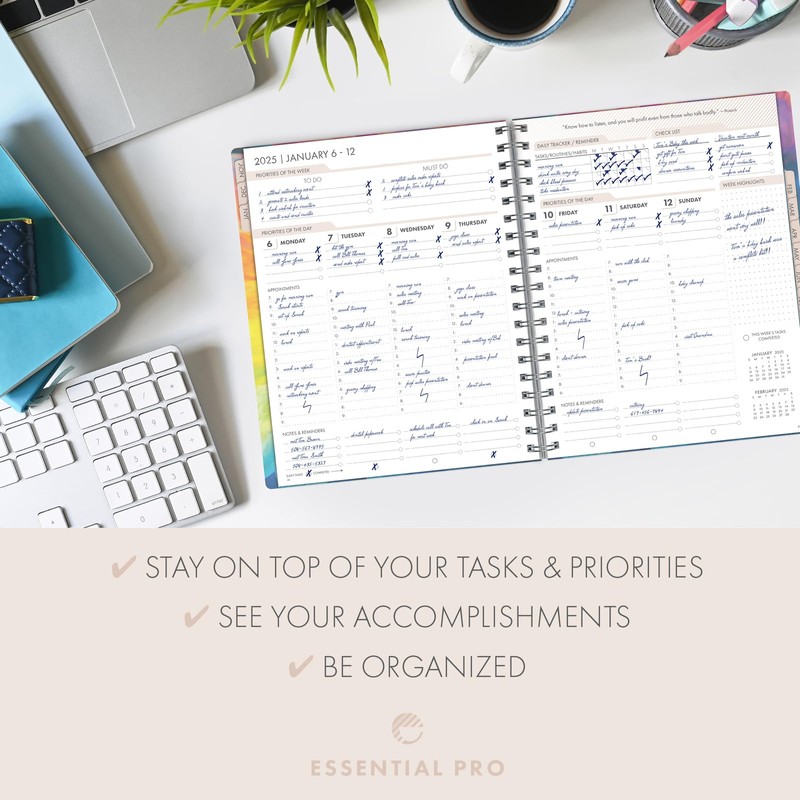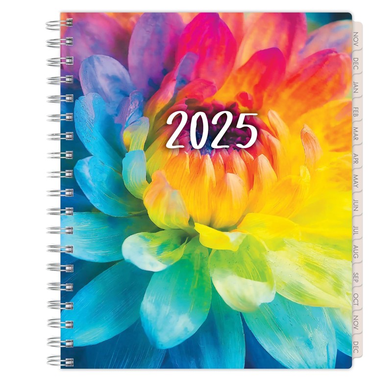 Essential PRO 2025 Daily, Weekly & Monthly Planner, 7"x9": 14 Months (Nov 2024 - Dec 2025) Monthly Tabs,Daily Tracking,Notes Pages,Storage Pocket,Bookmark w Sticky Notes (Rainbow Petals)