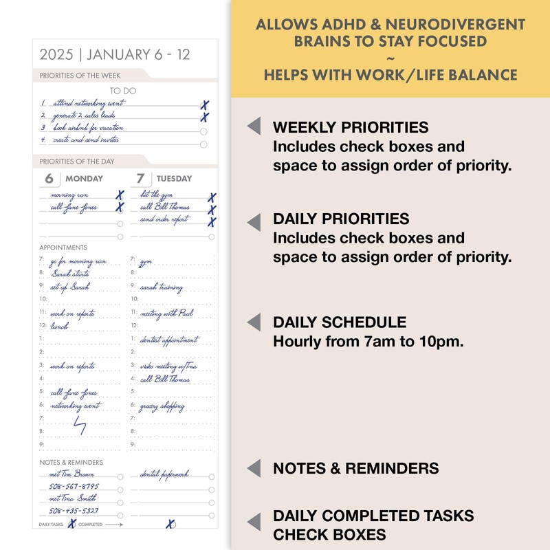- DESIGNED TO TRACK AND MAINTAIN PRODUCTIVITY - Tailored for those that want to be highly productive including neurodivergent individuals and those with ADHD, this planner helps improve organization, maintain focus, and streamline daily planning for better work-life balance.