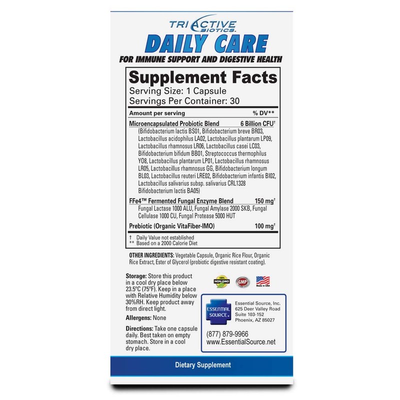 Essential Source TriActive Biotics Daily Care - Probiotics, Prebiotic Blend with 6 Billion CFU - Digestive Enzymes Supplement for Men & Women - Helps Support Gut Health, Immune Defense - 30 Capsules