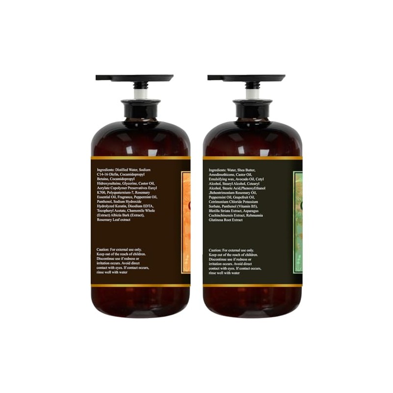 • Enriched with Natural Ingredients: Our shampoo and conditioner set is blended with natural rosemary and peppermint essential oils to stimulate the scalp and hair follicles, leaving a luxuriously fresh scent