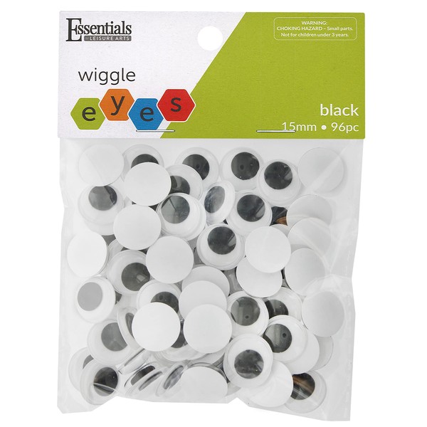 Essentials By Leisure Arts Eyes Paste On Moveable 15Mm Black 96Pc Googly Eyes, Google Eyes for Crafts, Big Googly for Crafts, Wiggle Eyes, Craft