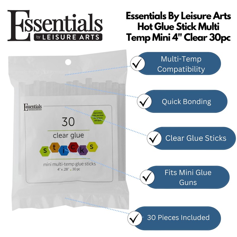 Essentials by Leisure Arts Mini Hot Glue Sticks 4 Inch 30 Pack - Clear Multi-Temp Adhesive for Hot Glue Guns, Small Craft Glue for DIY Projects and Repairs