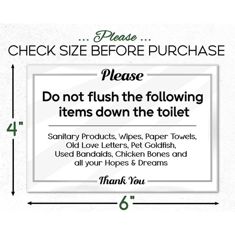 - RENTAL HOME NECESSITIES - Our septic sign for bathroom has a clear and easy-to-read design with high-resolution waterproof ink. Mount or lean against the wall or place in an easy-to-find 4"x6" frame to match your décor.