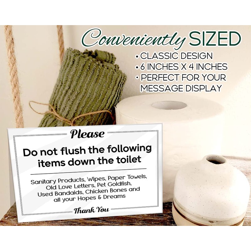 - RENTAL HOME MUST HAVES - FLUSH ONLY TOILET PAPER SIGN - Keep your restroom clean and clog-free with this "Do Not Flush" sign. It elegantly reminds and informs everyone do not flush anything except toilet paper.