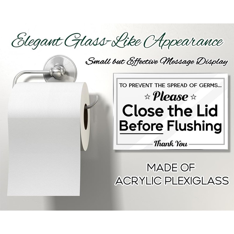 - CLOSE LID BEFORE FLUSHING SIGN - Ensure a hygienic and efficient restroom with this essential reminder. It elegantly instructs and reminds everyone to close the lid before flushing, maintaining cleanliness and preventing potential hazards.