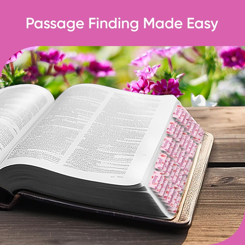 EssexWares – Candy Pink Leaves Bible Tabs for Old and New Testament, 80 Large Print Tabs for Bible Study, Water-Resistant and Durable Bible Index Tabs for Women and Men - 1.7" Wide