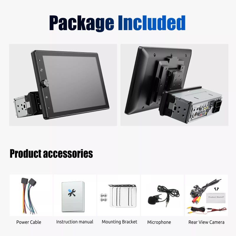 【Single-Din Multimedia Radio】 Car radio screen size 215mm (L) *135mm (W), installation size:179mm (L) *70mm (W) *52mm (H),10.4-inch HD video, manually Rotate high-resolution capacitive IPS touch screen, sensitive operation. The car player interface contains a file manager. Supports U-disk/USB/TF card input