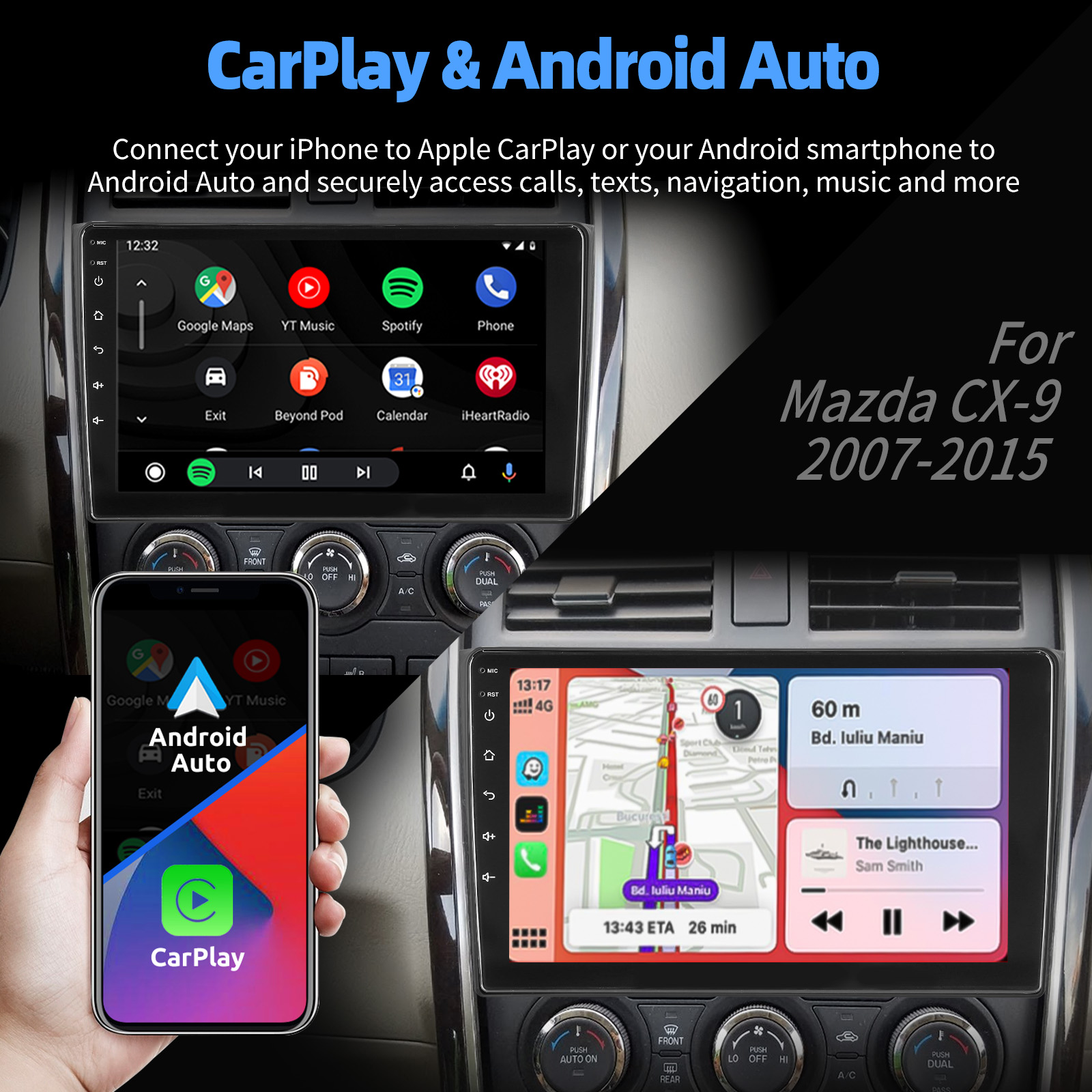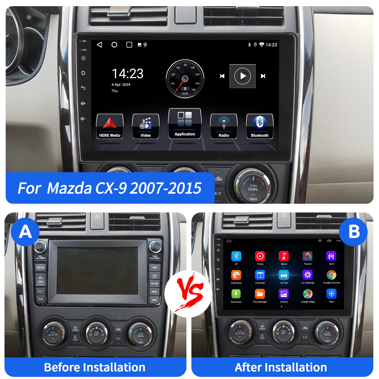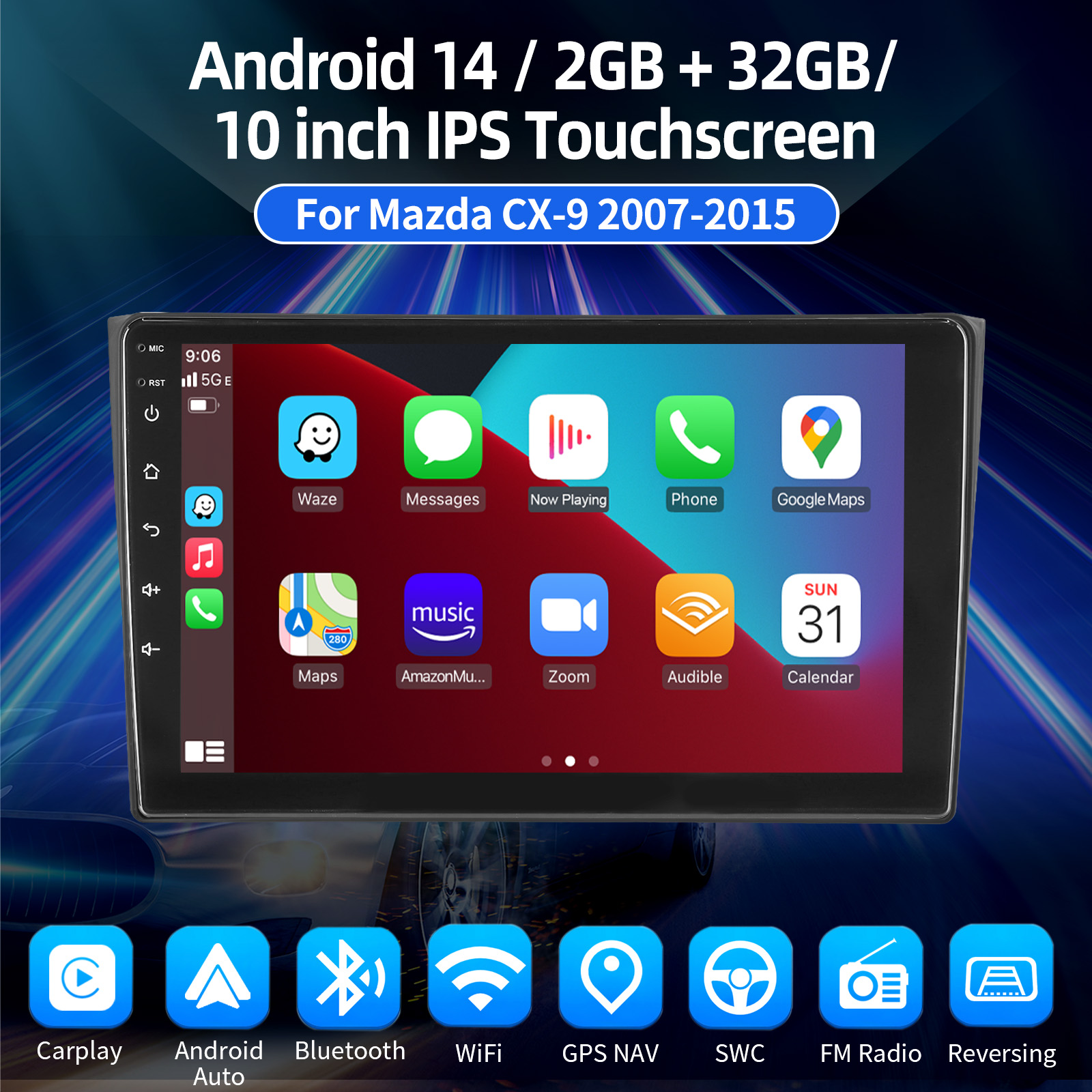 10.1 Inch Android 14 Car Radio For Mazda CX9 2007-2015: The Android car radio with 10.1" 1280* 720 IPS capacitive touchscreen, 2GB RAM and 32GB ROM allows you to download your favorite apps and videos, so driving is no longer boring. No extra frame, no cable change, plug and play.