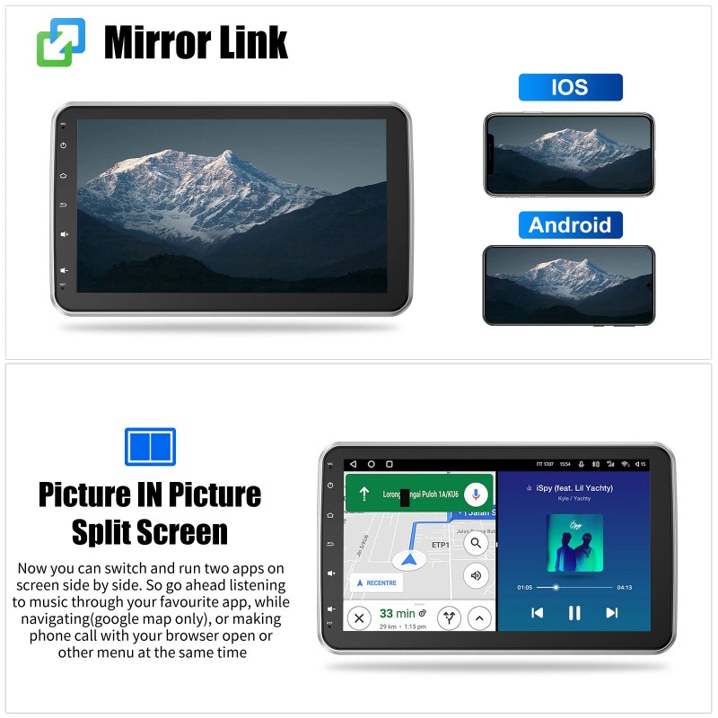 • Phone Link: Wireless Carplay & Android Auto & Mirror Link