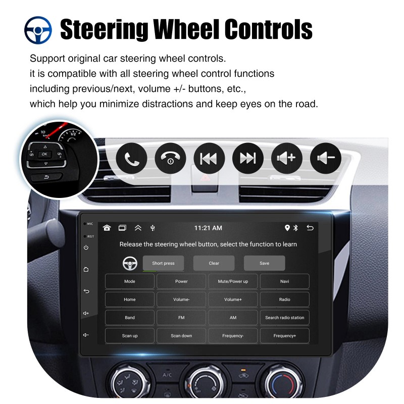 Mobile phone mirroring link, support IOS/Android system, mobile phone screen projection, movie playback, etc. Supports the original steering wheel control, you can use the steering wheel to control the car radio, answer calls, cut songs, etc. while driving.