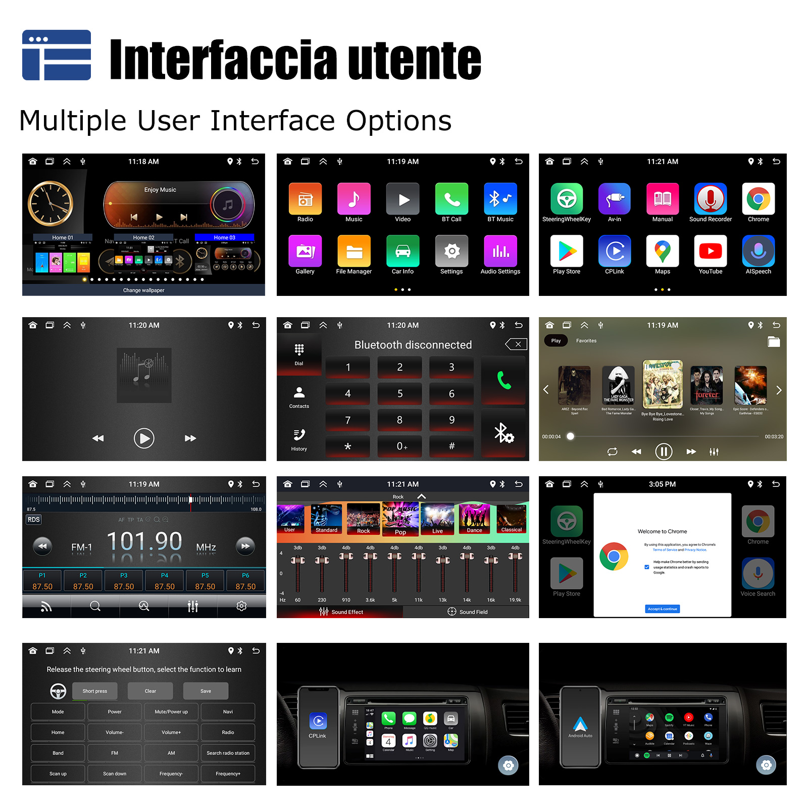 - Features: AM/FM radio, Android, Android Auto, Animated display, Apple Carplay, ASP, Bluetooth, Built-in equalizer, Built-in GPS antenna, Hands-free system, HD radio ready, ID3tag, Mirror Link, RDS, steering wheel control, touchscreen, USB, WIFI, WMA