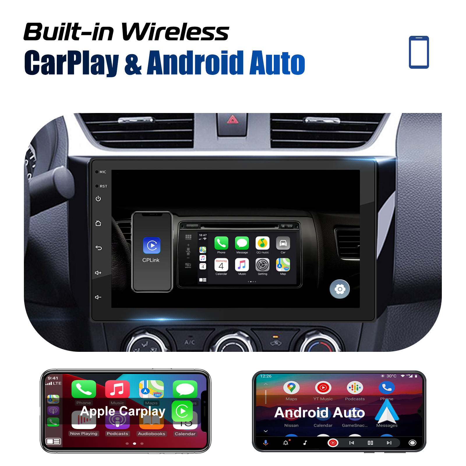 ESSGOO 32G 7in Double DIN Apple CarPlay Head Unit Car Stereo GPS MP3 Radio USB Sat +CAM