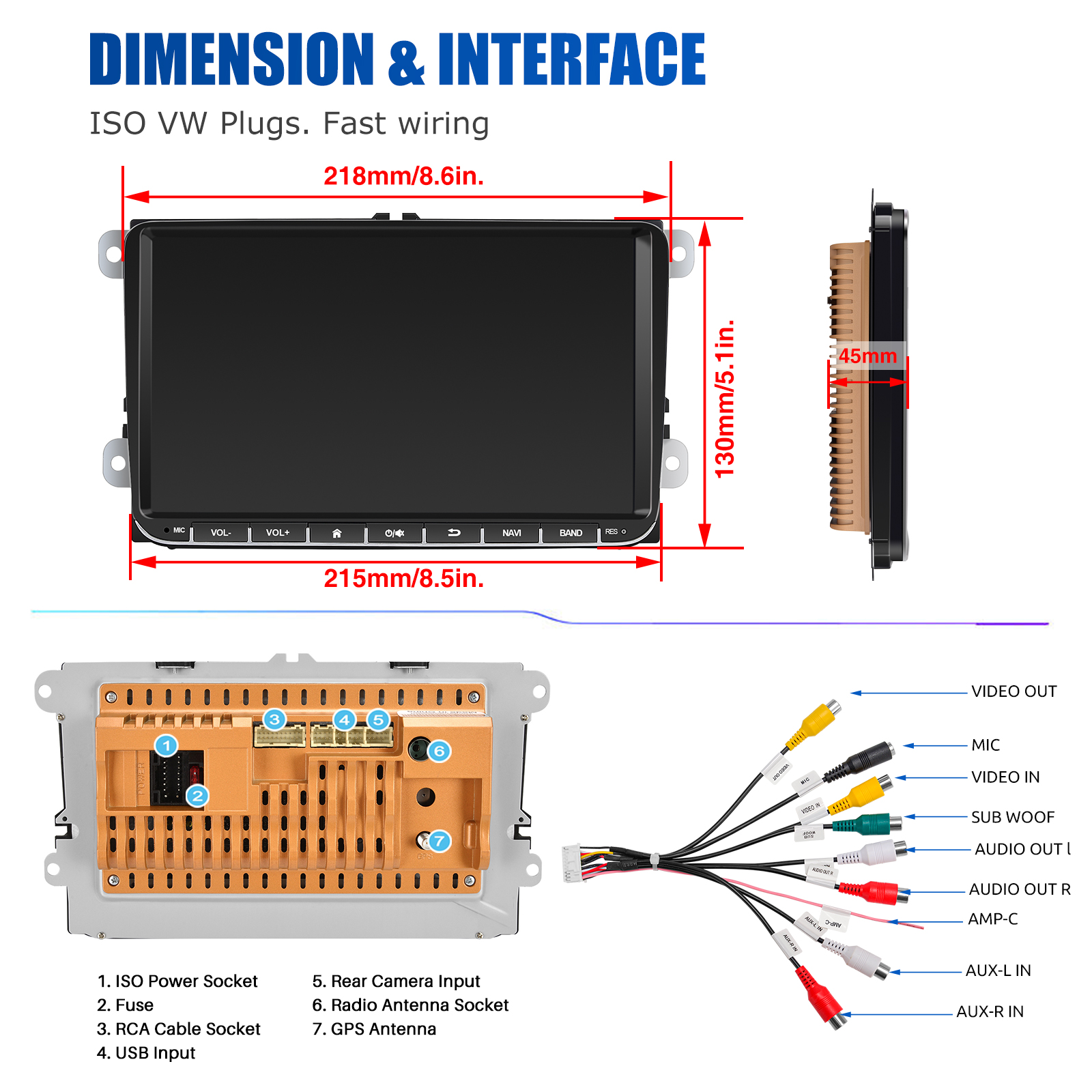 RDS/FM radio & Bluetooth & EQ Setting: Supports Bluetooth 4.0, with built-in microphone and speaker so you can make hands-free calls while driving. Support access to phone book, music playback interface, etc. Support RDS. You can store 18 FM radio stations. Hifi mode setting, supports 16-band EQ adjustment, which can be adjusted according to your personal preference. 4 x 45W amplifiers, surround sound and subwoofer output.