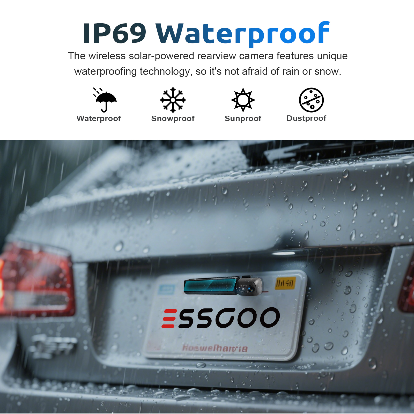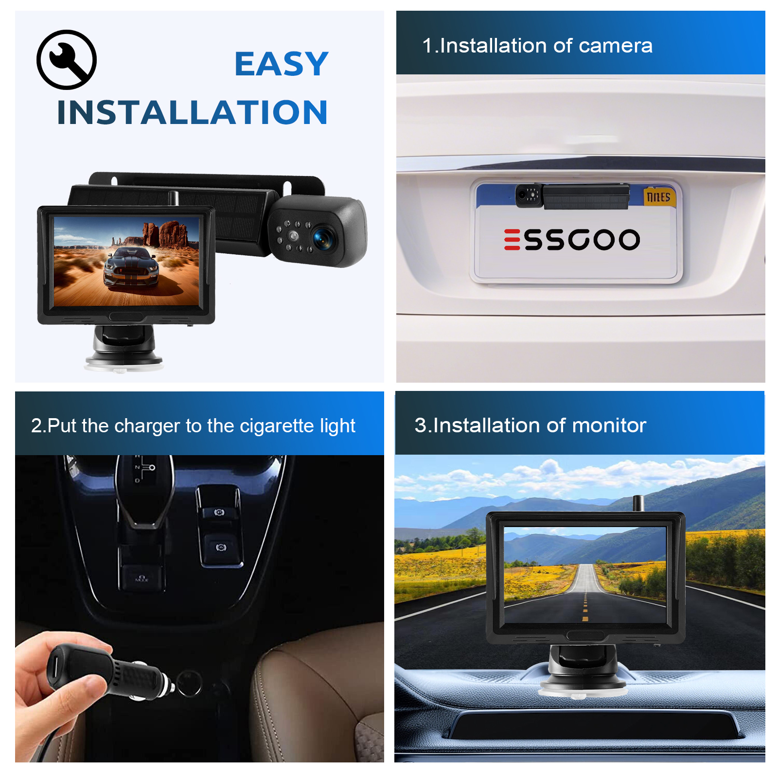 ESSGOO 5" Monitor Wireless Solar Magnetic Backup Camera For Truck Car Trailer RV 1080P