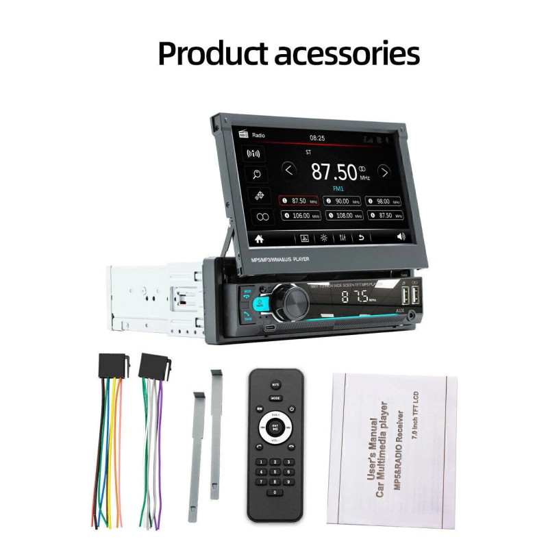 【Single-Din Touchscreen Car Radio】 7-inch high-resolution manually retractable capacitive touchscreen, advanced window interface. Car radio supports multiple playback modes: USB, AUX-in, Bluetooth. This fits all General Motors in dash design.