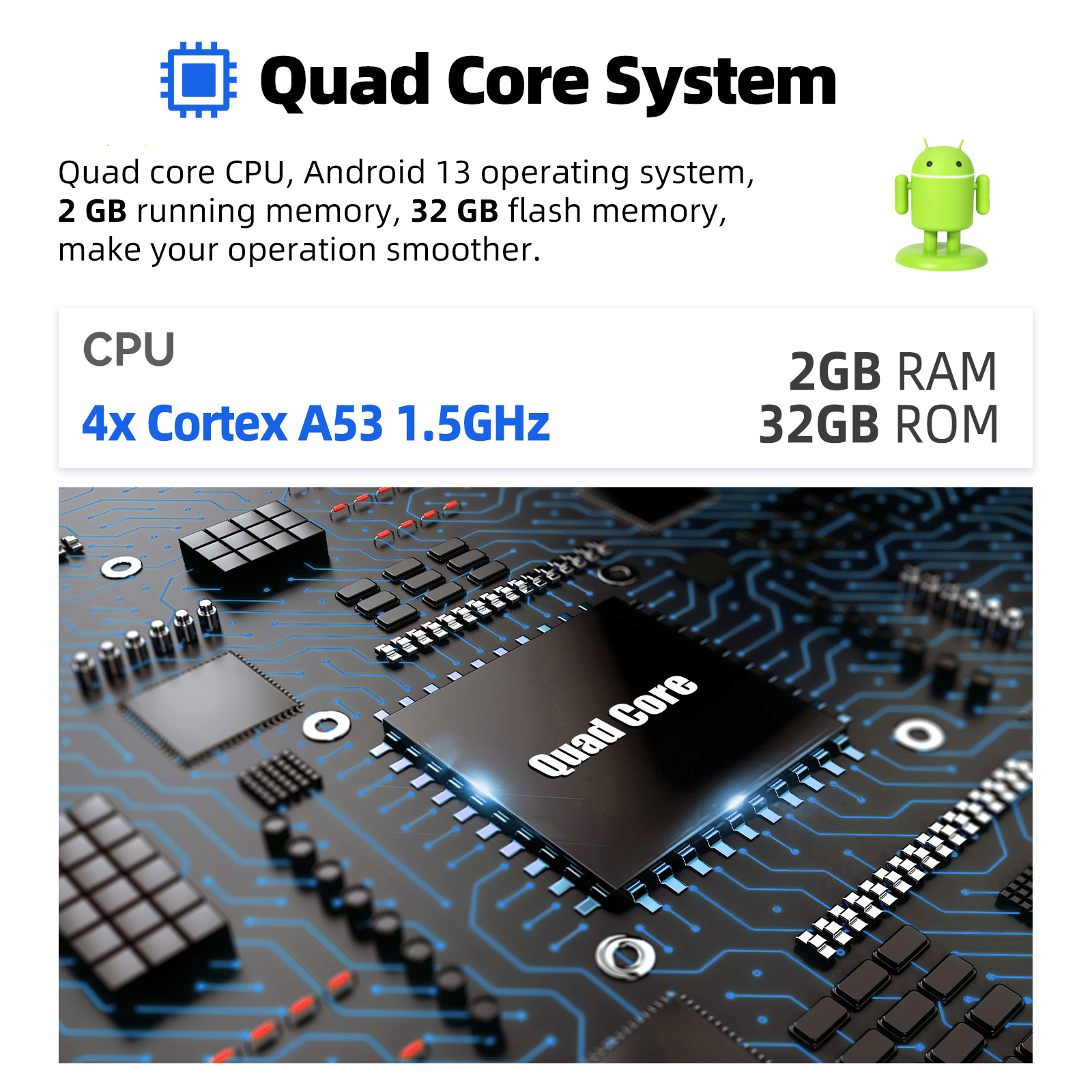 - CPU: Cortex A53 1.5GHZ x4