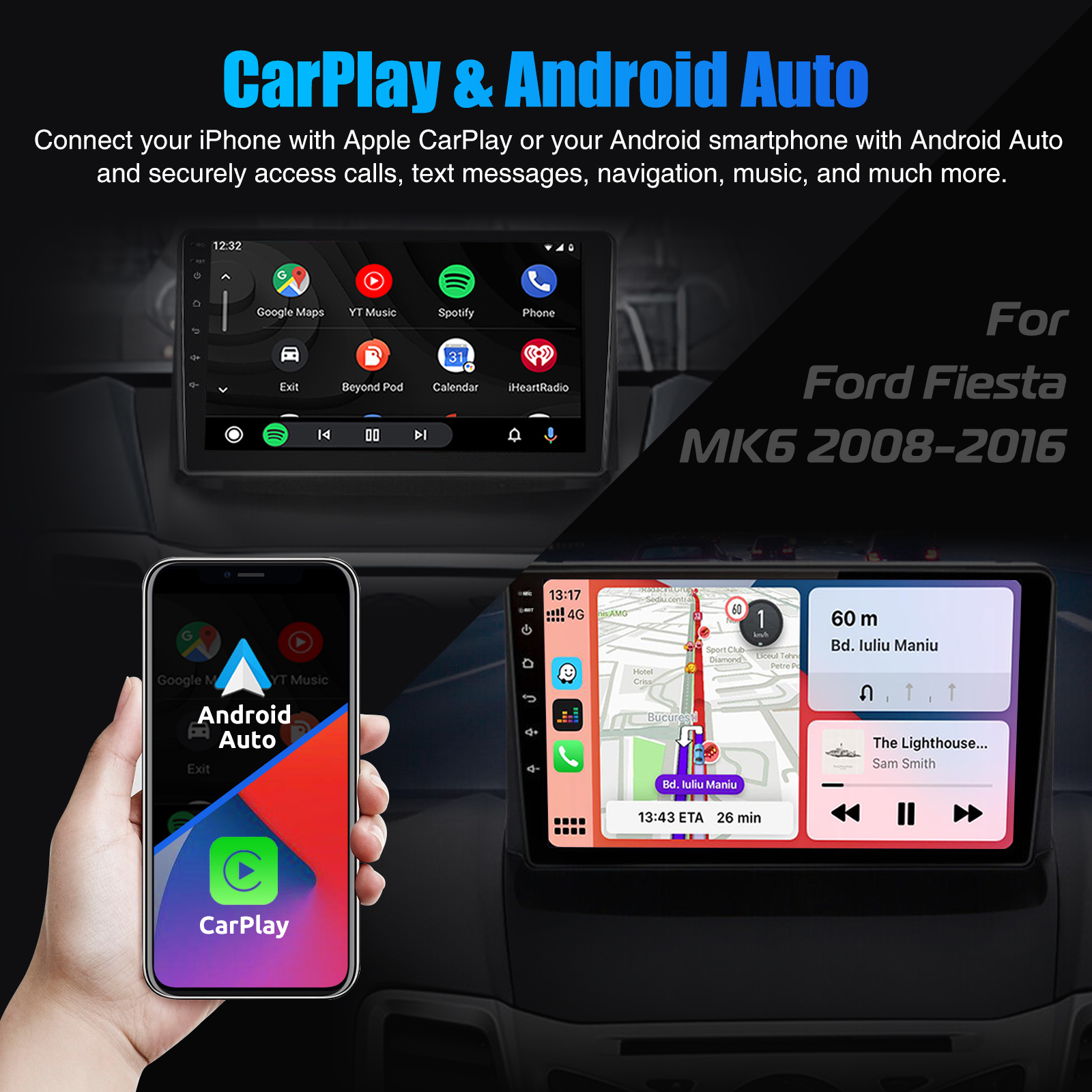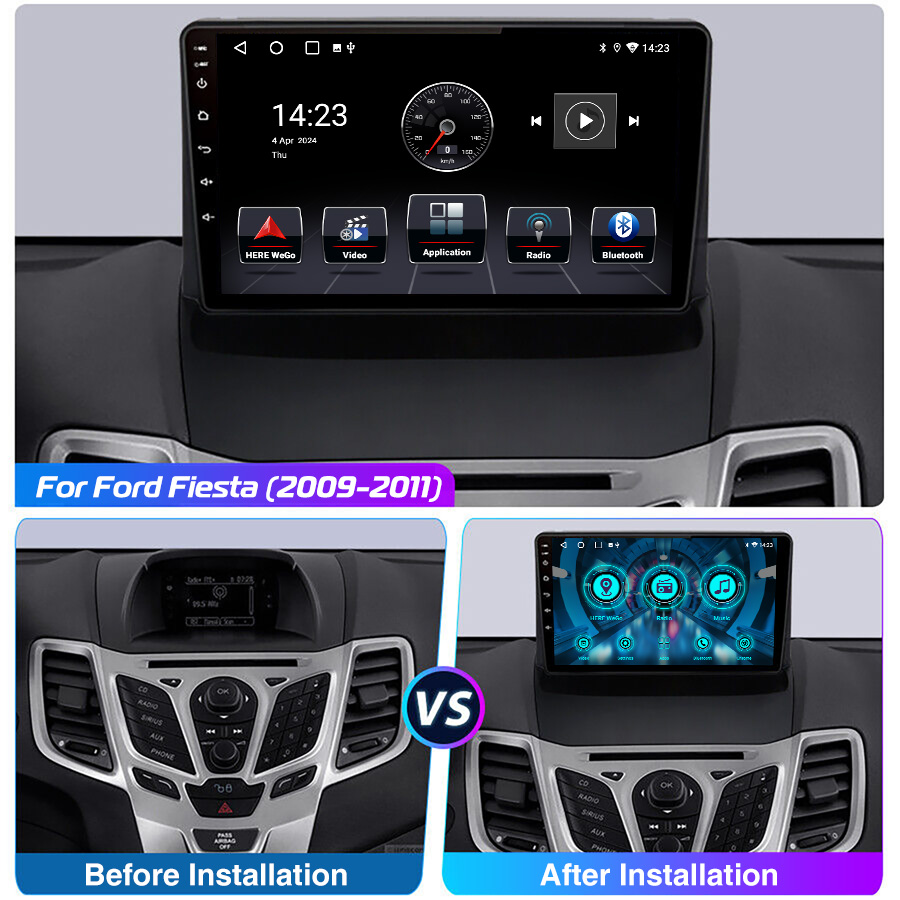 9 Inch Android 13 Car Radio For Ford Fiesta MK6(2009-2013): The Android car radio with 9" 1280*720 2.5D HD capacitive touch screen, 2GB RAM and 64GB ROM allows you to download your favorite apps and videos, so that driving will never be boring .No additional frame, no cable change, plug and play.