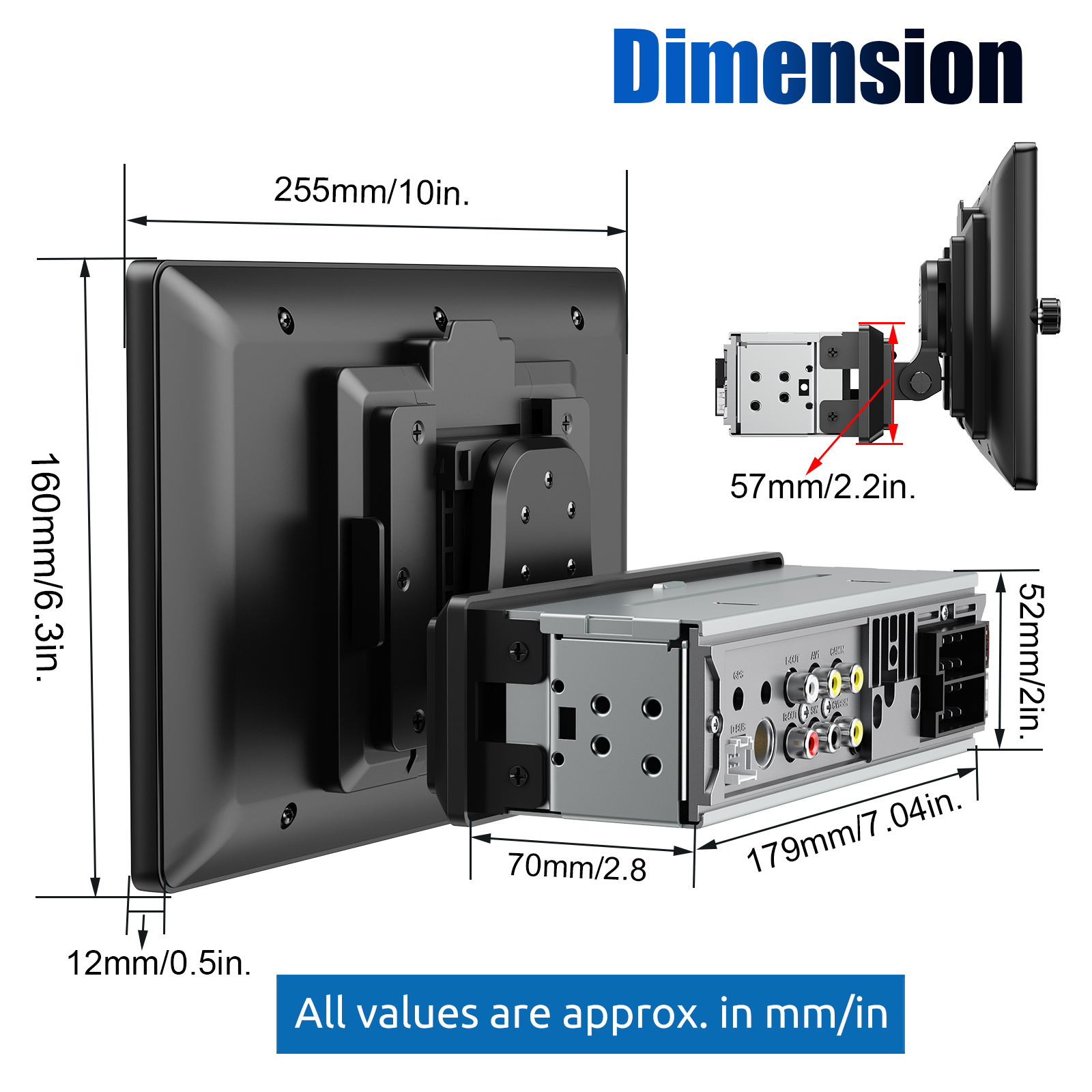 【Single-Din Multimedia Radio】 Car radio screen size 215mm (L) *135mm (W), installation size:179mm (L) *70mm (W) *52mm (H),10.4-inch HD video, manually Rotate high-resolution capacitive IPS touch screen, sensitive operation. The car player interface contains a file manager. Supports U-disk/USB/TF card input